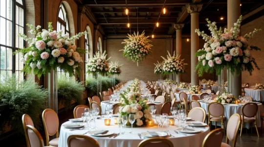 Le volume nécessaire se calcule en fonction de la taille de votre espace : une salle aux proportions généreuses nécessite des compositions hautes et fournies pour ne pas sembler vide, tandis qu’un lieu intimiste supporte mieux une approche délicate. Pour une salle de 200 m², prévoyez idéalement 15 à 20% de votre budget déco pour les fleurs afin d’obtenir un effet visuel satisfaisant.