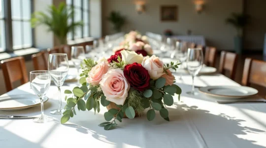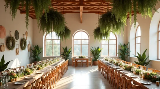 Concentrez vos efforts sur les surfaces verticales, largement négligées alors qu’elles occupent la majeure partie du champ visuel. Un mur habillé de verdure suspendue, de guirlandes lumineuses délicates ou de drapés texturés transforme instantanément la perception de l’espace. Cette intervention verticale crée souvent plus d’impact qu’une multiplication de centres de table élaborés.
