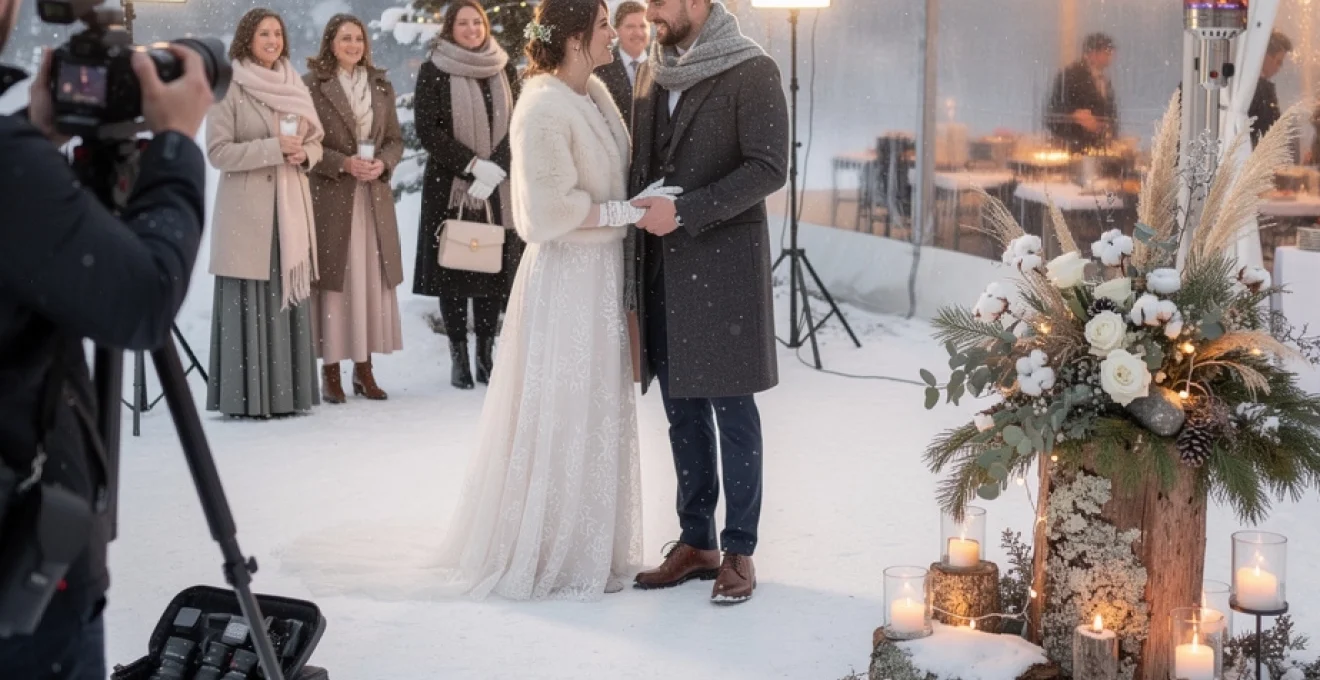 La distribution de couvertures en cachemire ou de châles en laine devient un élément logistique essentiel. Ces accessoires, personnalisés aux couleurs du mariage, servent simultanément de cadeaux d’invités et de solutions pratiques contre le froid. Les couples prévoyants font également installer des tapis chauffants discrets sous les zones d’attente principales, créant un microclimat confortable pour les pieds des convives.